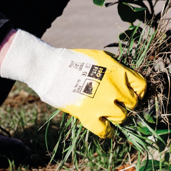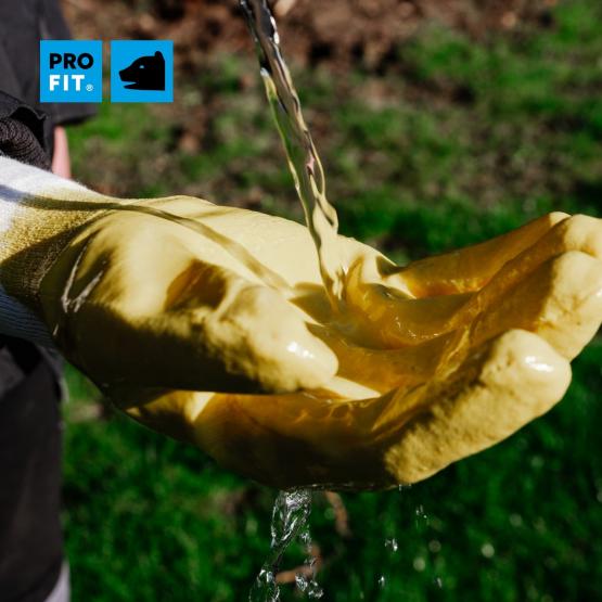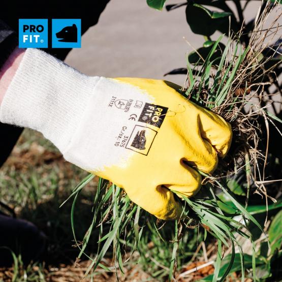 Nitril Handschuhe, „Mega lite“, gelb, 3/4 getaucht, Strickbund ist für den regelmäßigen Arbeitseinsatz ausgelegt und unterstützt zuverlässigen Handschutz bei wiederkehrenden Tätigkeiten.