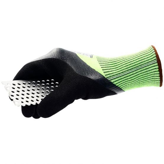 Nitril Schnittschutzhandschuh „Ultra Mid Cut D“, neongrün ist ein nitrilbeschichteter Schnittschutzhandschuh (Level D) für anspruchsvolle Montage- und Industriearbeiten. Die 2‑fache Nitril-Beschichtung auf Handinnenfläche und 3/4 des Handrückens sorgt für Grip und Flüssigkeitsdichtigkeit – auch bei öligen oder leicht feuchten Bedingungen.