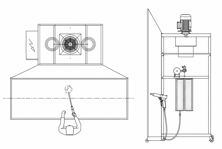 Wer täglich pulverbeschichtet, braucht mehr als nur eine Kabine. Entscheidend ist ein Arbeitsbereich, der Pulvernebel kontrolliert erfasst, Abläufe sauber hält und die Produktion zuverlässig unterstützt.